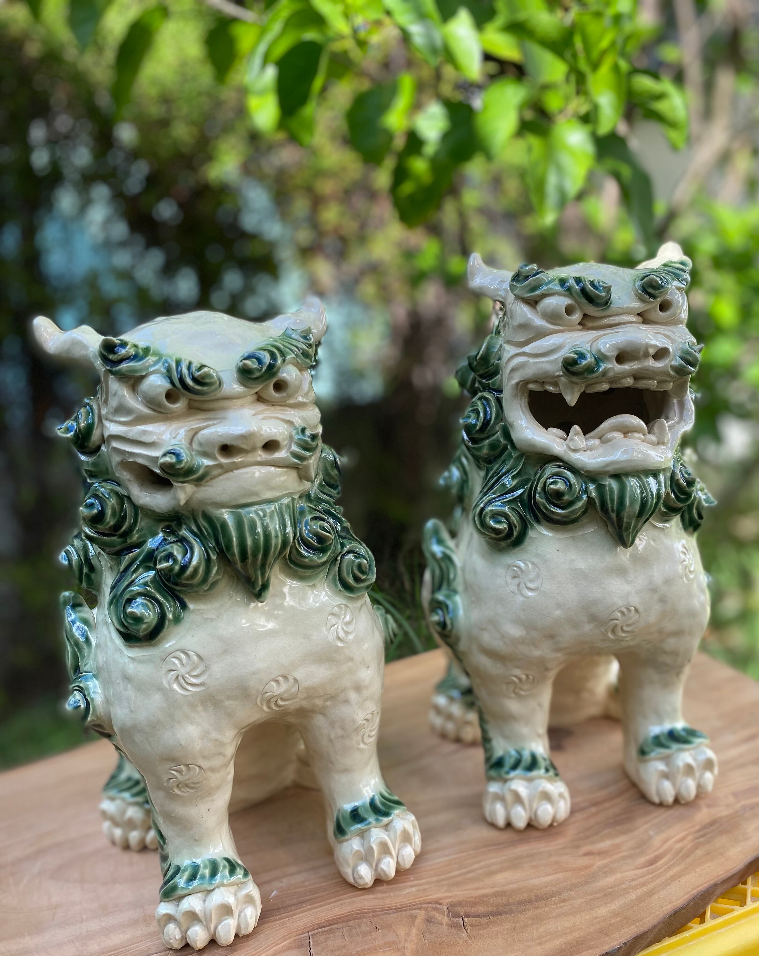 真っ直ぐ正面を見据えて座ってるシーサーです。
