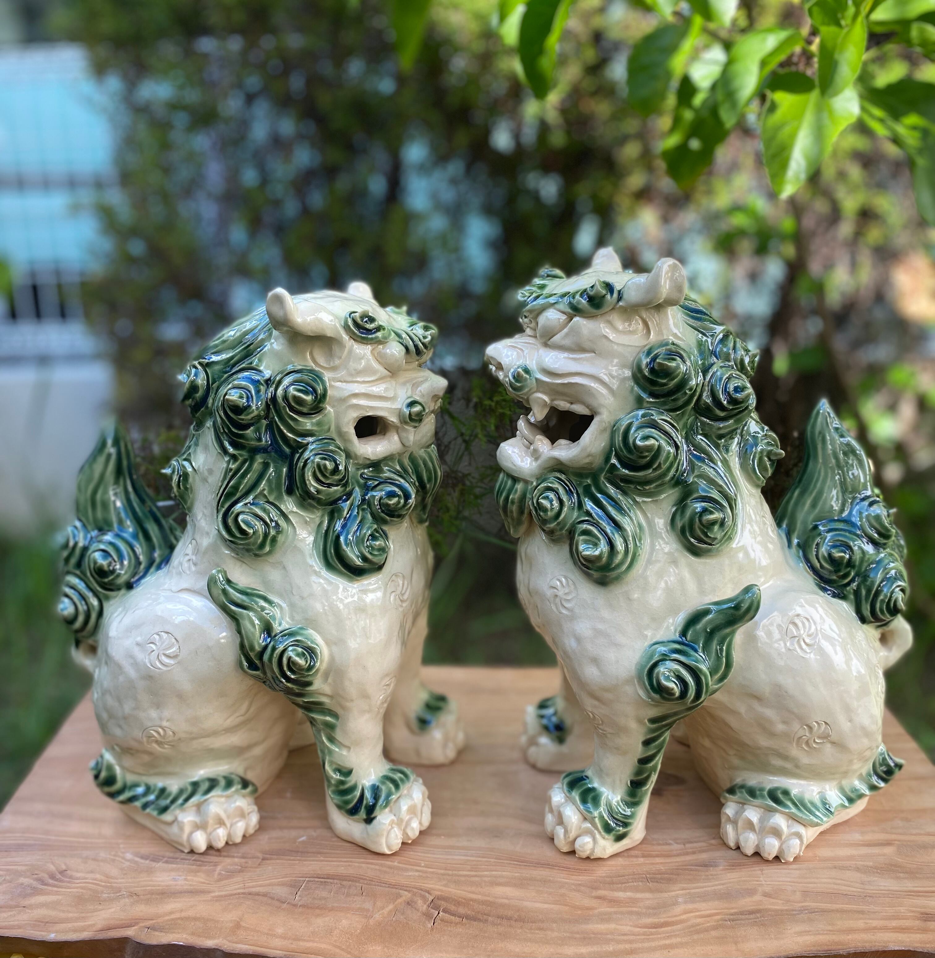 白土で成形し、体は透明釉、毛は緑釉を塗ってあります。