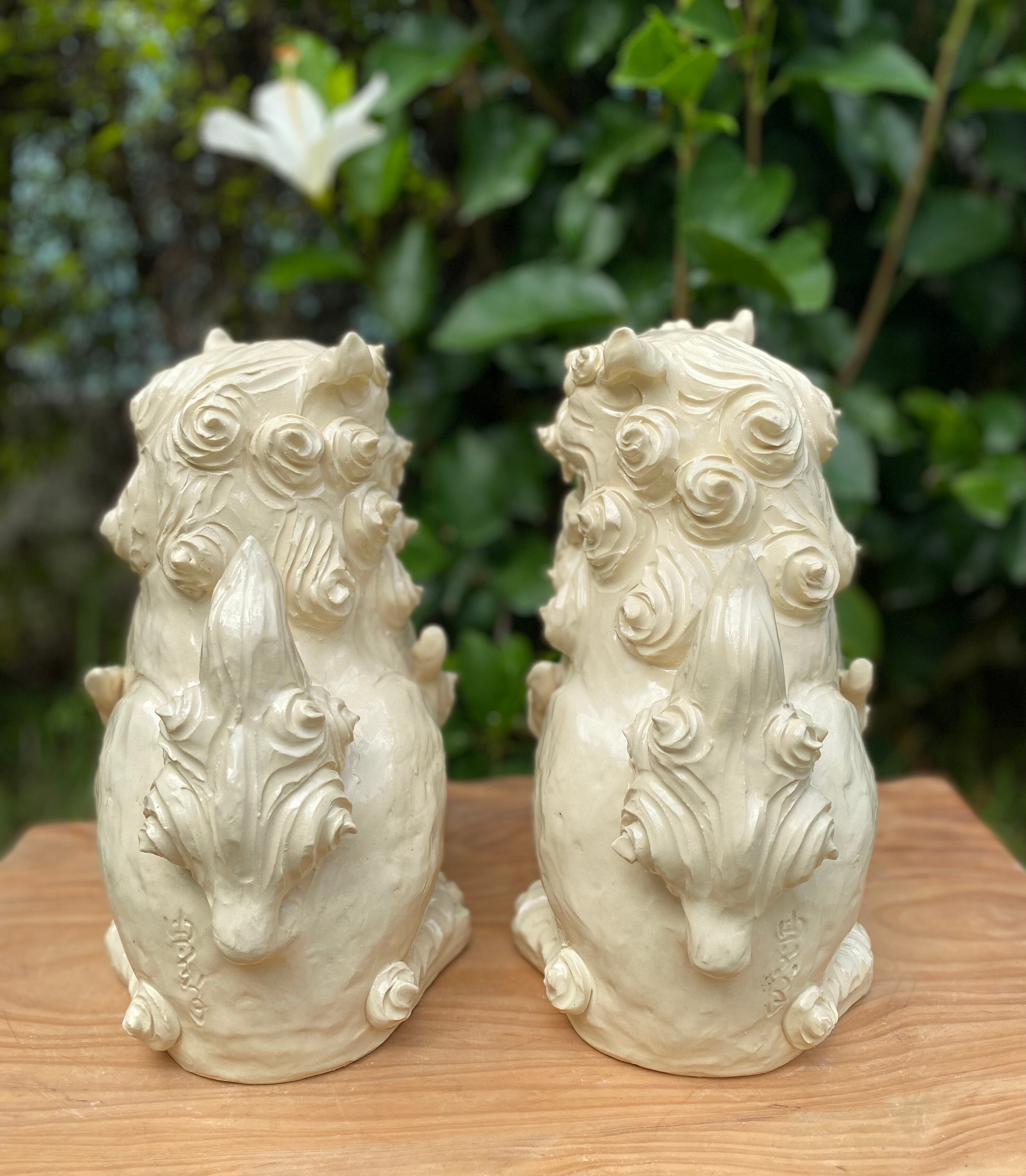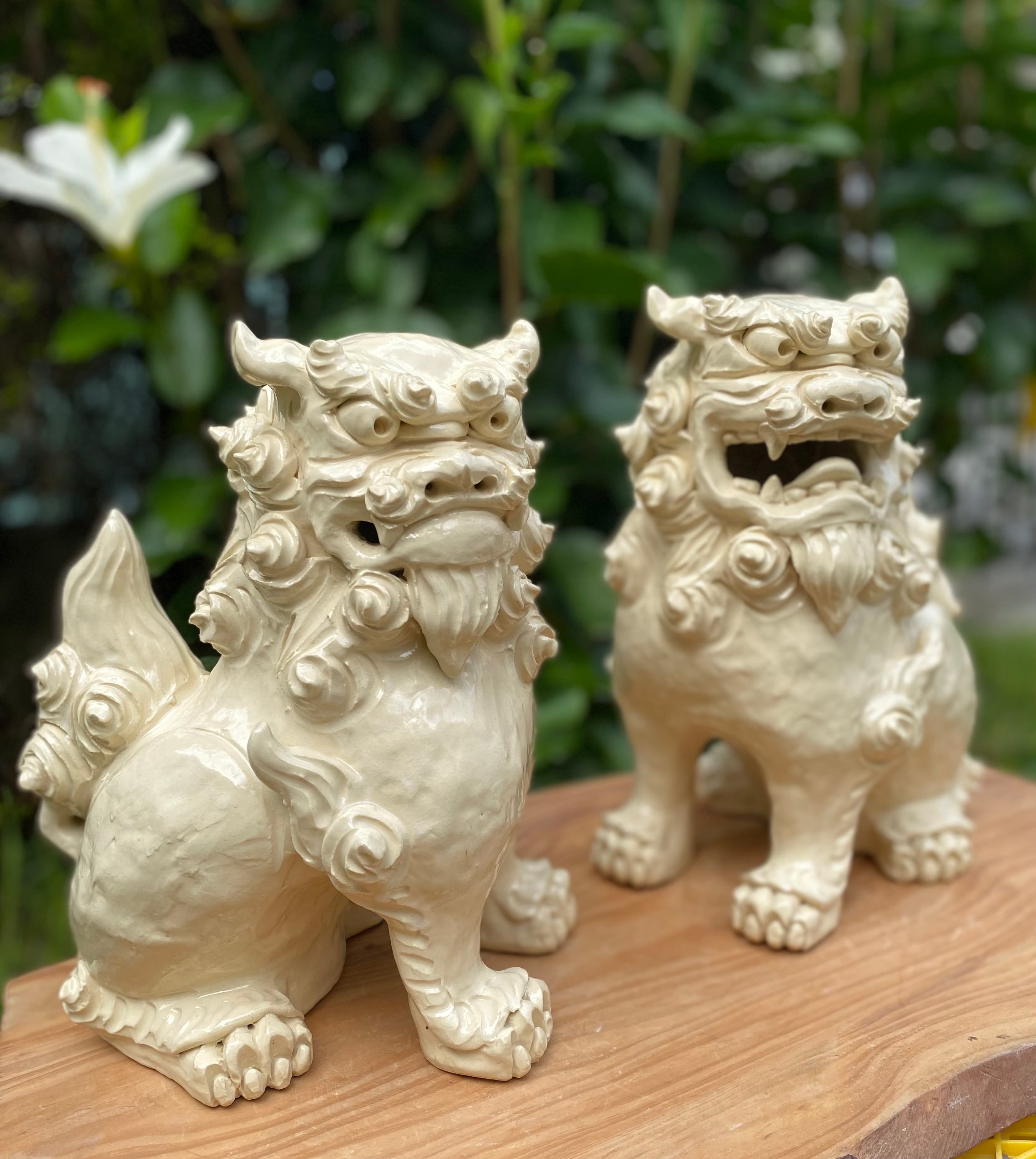 座りシーサー(大)(白・ツヤあり)